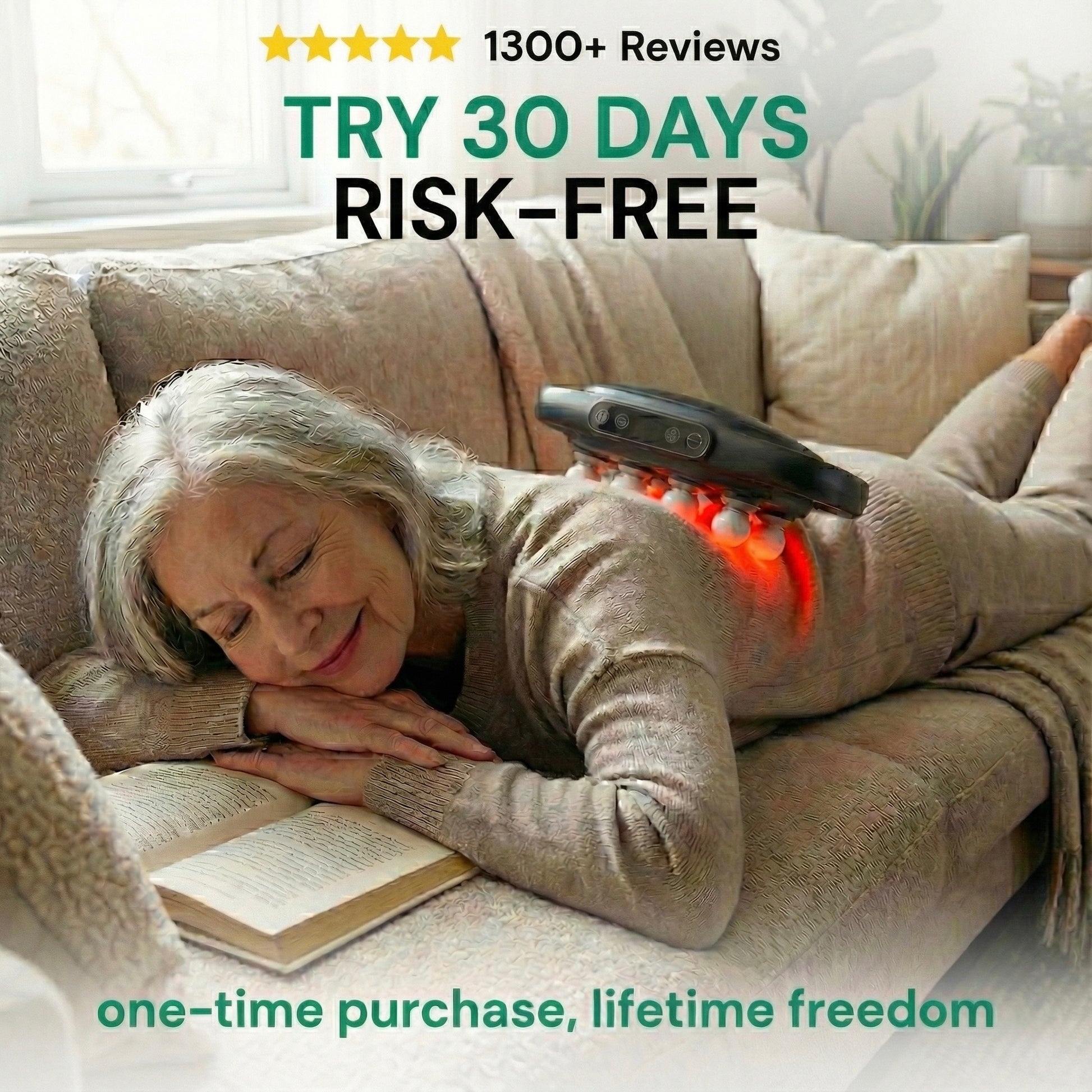 This means you get professional-grade relief in your living room. After canceling your next couple appointments, you already made your money back and never have to pay a chiropractor again. So basically, saving money, saving time and being able to relief pain & stiffness wherever, whenever. Replacing endless appointments with a one-time solution.